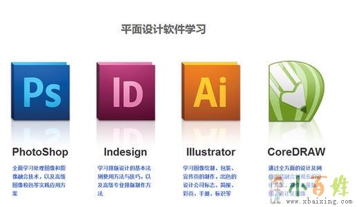 (1)Photoshop:图像处理、编辑、通道、图层、路径综合运用,图像色彩的校正,各种特效滤镜的使用、特效字的制作,图像输出与优化等;灵活运用图层风格、流体变形及褪底和蒙板,制作出千变万化的图像特效来源www.xbaixing.com。